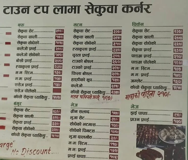 Located at Sinamangal Chok in Kathmandu, Town Top Lama Sekuwa Corner is a restaurant run by the local Lama family.